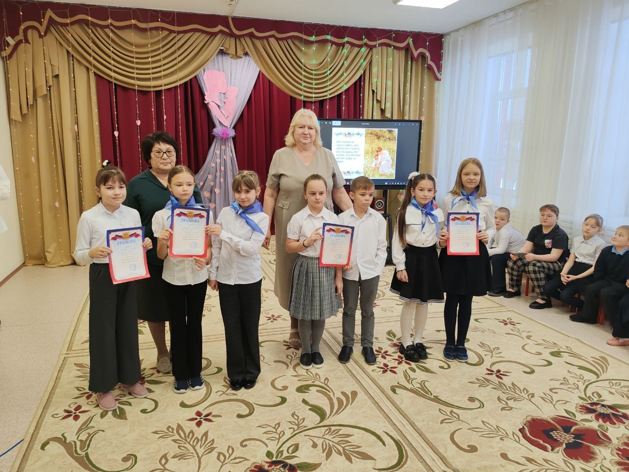 В преддверии праздника "День матери" сегодня в нашей школе прошел конкурс юных чтецов. Доброжелательная обстановка, громкие аплодисменты зрителей воодушевляли юных чтецов. Каждый участник старался прочесть своё стихотворение лучше всех! В каждом ребенке была видна особая индивидуальность. Конкурс дал возможность ребятам публично выступить, показать свой талант и продемонстрировать любовь к самому близкому и родному человеку - маме. Все участники конкурса были награждены грамотами!