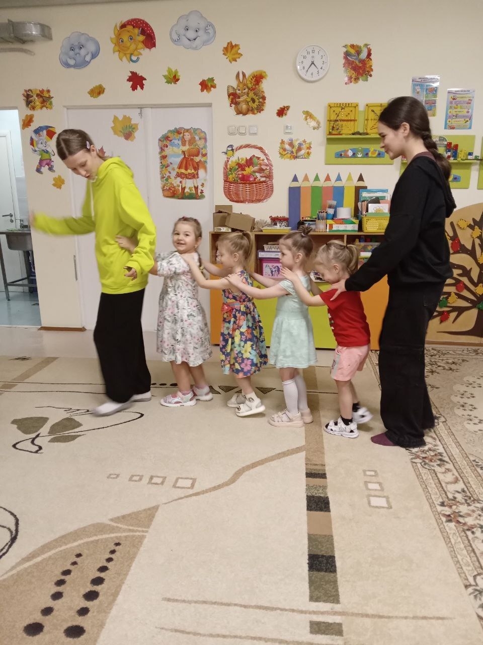 Группа ребят посетила группы детского сада и на себе "примерила" профессию воспитателя. Игровая деятельность, общение с малышами позволили реально ощутить особенности данной профессии и попробовать свои силы и возможности в педагогическом направлении.